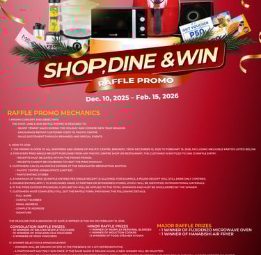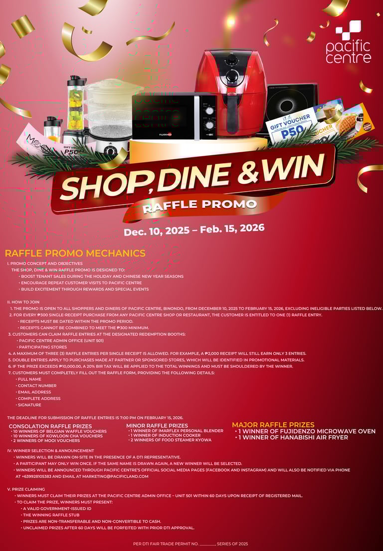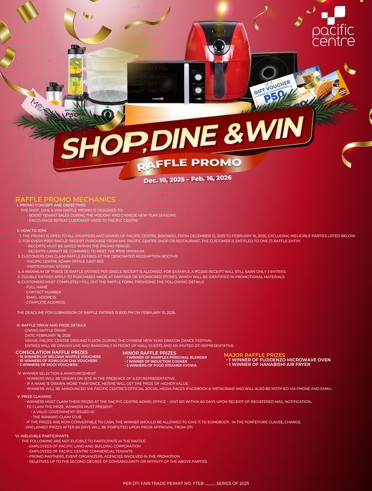 Pacific Centre, situated in the heart of Binondo, features popular business establishments such as Starbucks, 24 Chicken, and Polland, along with a variety of new businesses. This modern business center serves both professionals and leisure seekers, offering a diverse range of dining options, services, and business establishments.
